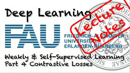 Welcome back to deep learning! So, today we want to discuss in the last part about weakly and self-supervised learning: a couple of new losses that can also help us with the self-supervision. So, let’s see what we have on our slides: Today part number four and the idea is contrastive self-supervised learning.